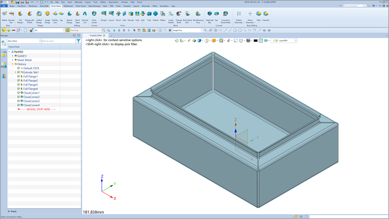 Las funciones clave para el diseño de chapa metálica están integradas en la lógica de diseño, lo que las hace totalmente visibles y fáciles de entender.